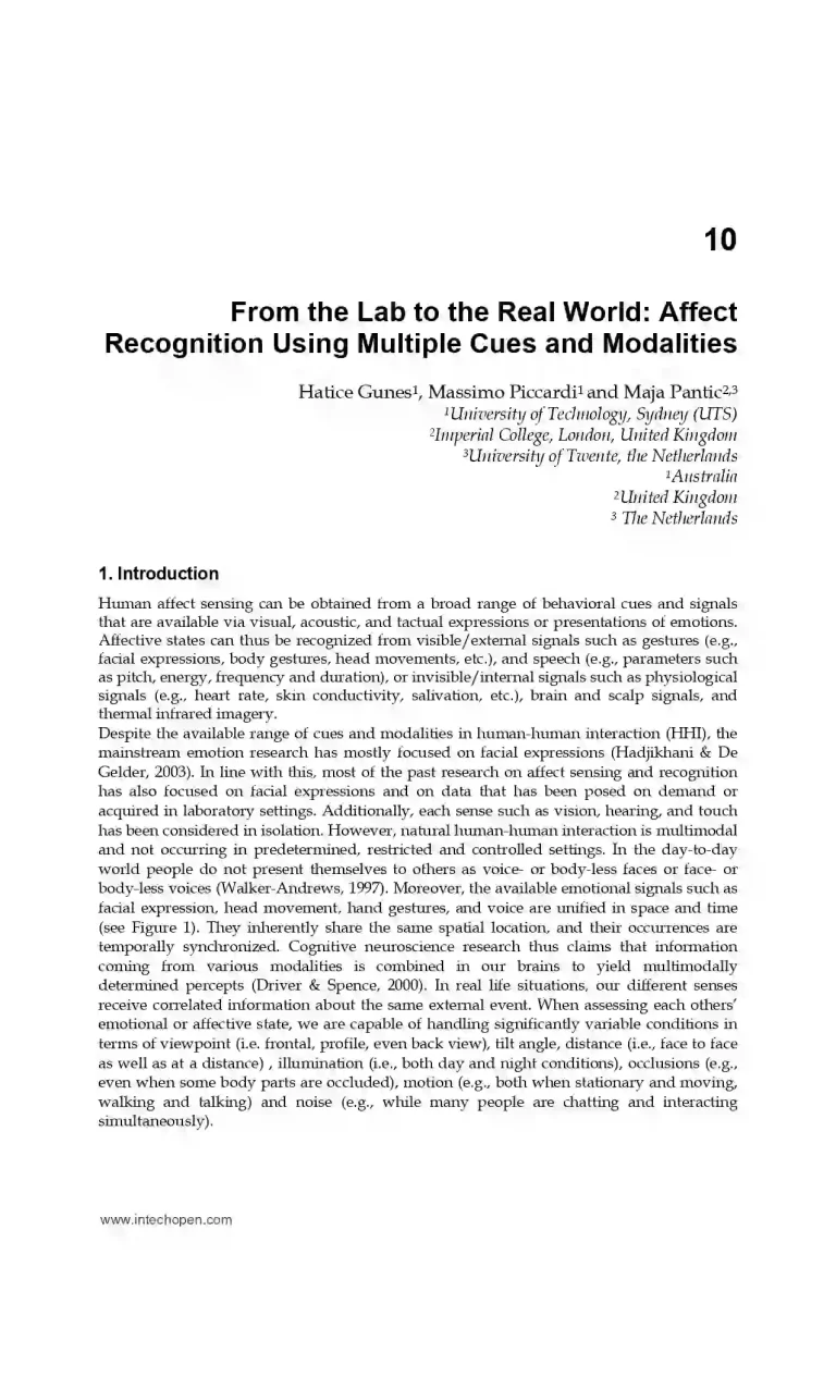 From the Lab to the Real World: Affect Recognition Using Multiple Cues and Modalities 33 14 View details Download