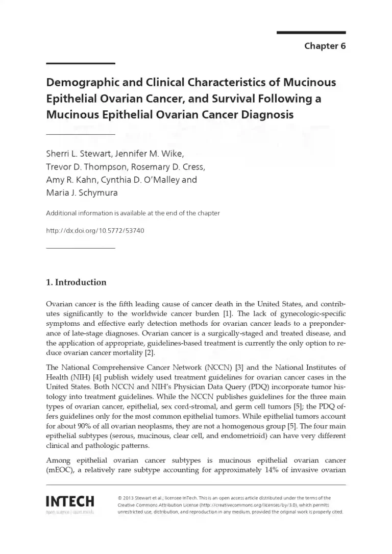 Demographic and Clinical Characteristics of Mucinous Epithelial Ovarian Cancer, and Survival Following a Mucinous Epithelial Ovarian Cancer Diagnosis 37 19 View details Download