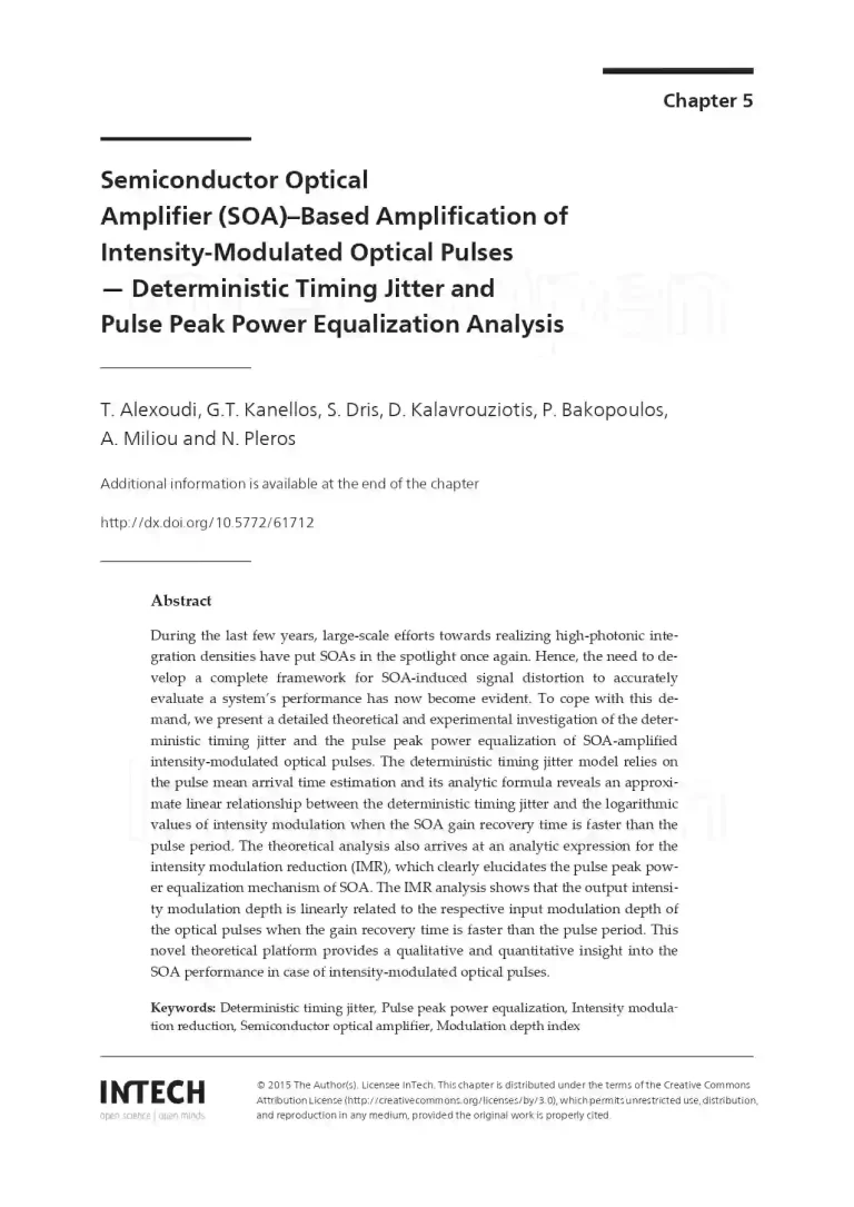 Semiconductor Optical Amplifier (SOA)–Based Amplification of Intensity-Modulated Optical Pulses — Deterministic Timing Jitter and Pulse Peak Power Equalization Analysis 37 15 View details Download
