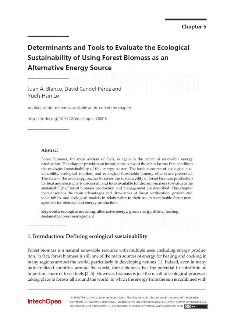 Determinants and Tools to Evaluate the Ecological Sustainability of Using Forest Biomass as an Alternative Energy Source 33 17 View details Download