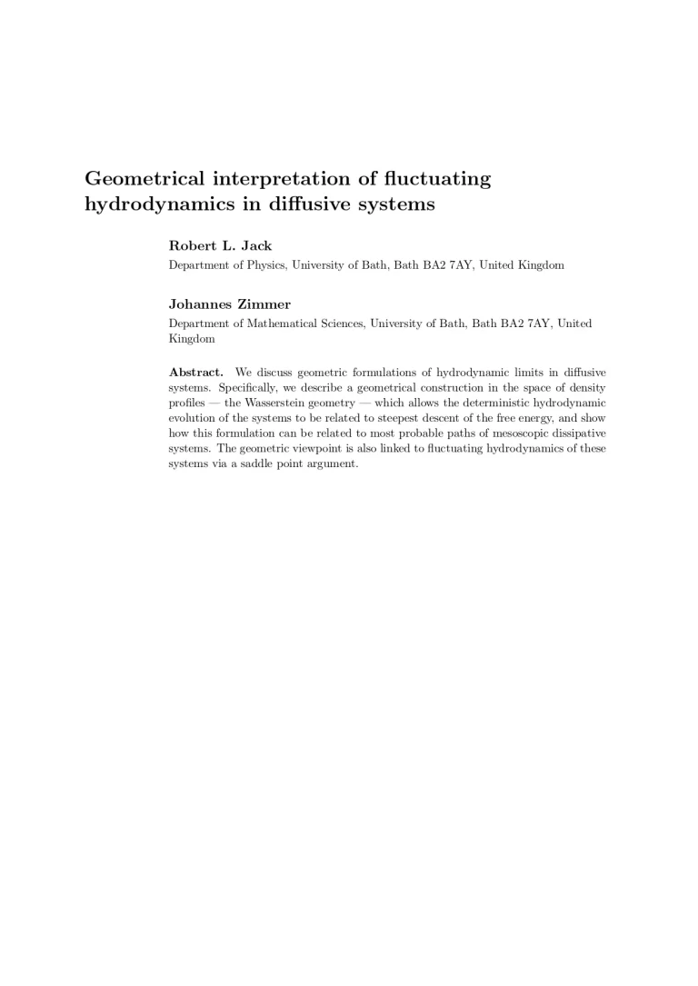 Geometrical Interpretation of Fluctuating Hydrodynamics in Diffusive Systems 40 25 View details Download
