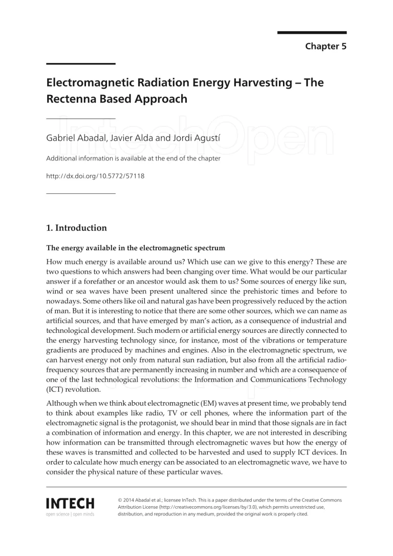 Electromagnetic Radiation Energy Harvesting – The Rectenna Based Approach 33 24 View details Download