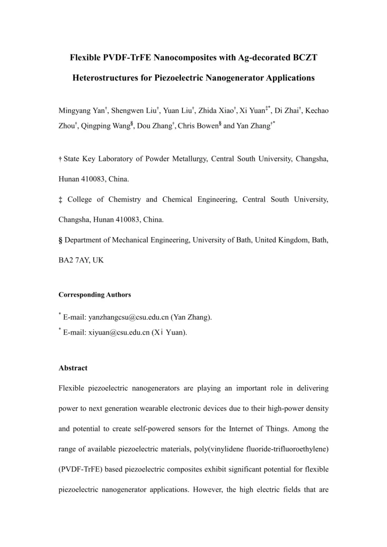 Flexible PVDF-TrFE Nanocomposites with Ag-decorated BCZT Heterostructures for Piezoelectric Nanogenerator Applications 37 25 View details Download