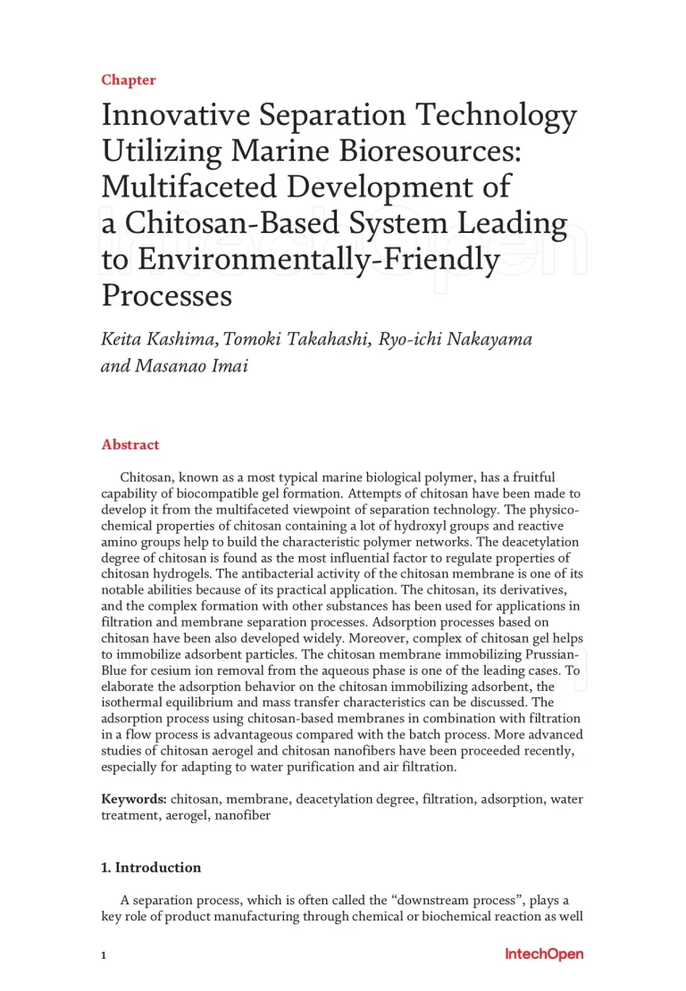 Innovative Separation Technology Utilizing Marine Bioresources: Multifaceted Development of a Chitosan-Based System Leading to Environmentally-Friendly Processes 37 25 View details Download