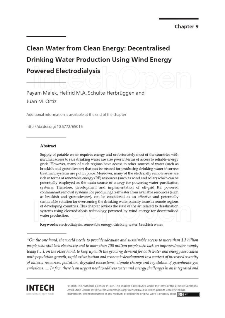 Clean Water from Clean Energy: Decentralized Drinking Water Production Using Wind Energy Powered Electrodialysis 43 31 View details Download