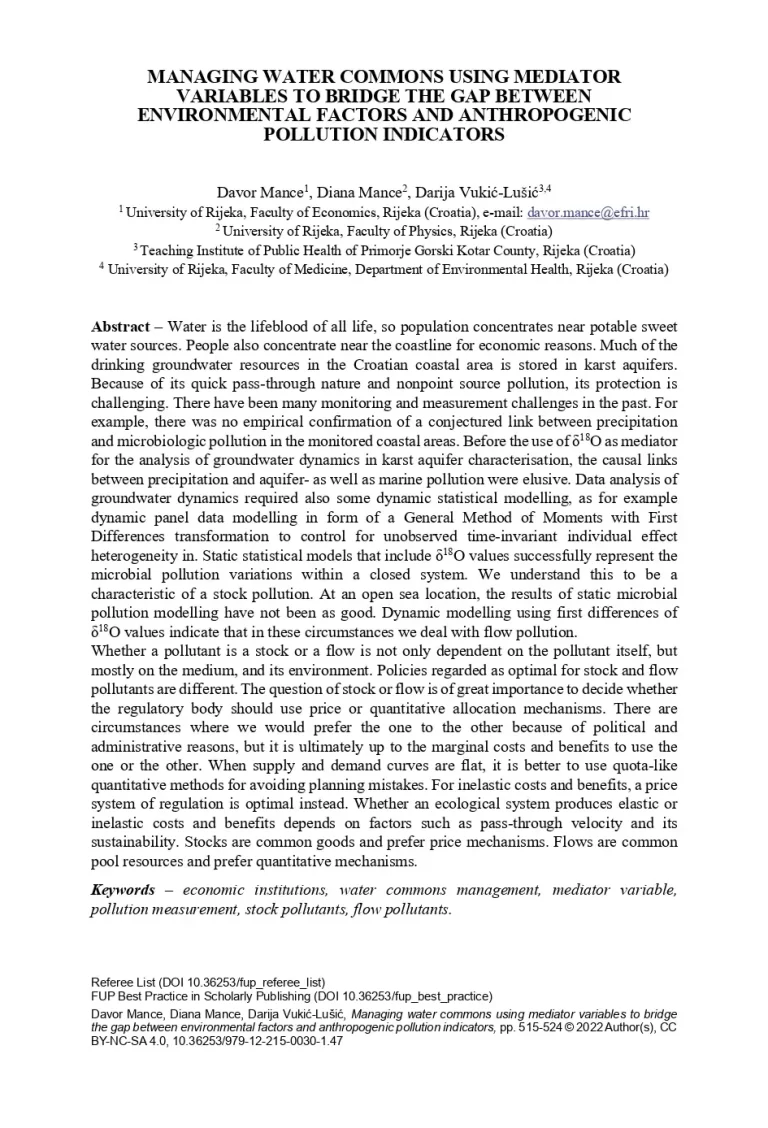 Managing water commons using mediator variables to bridge the gap between environmental factors and anthropogenic pollution indicators 49 16 View details Download