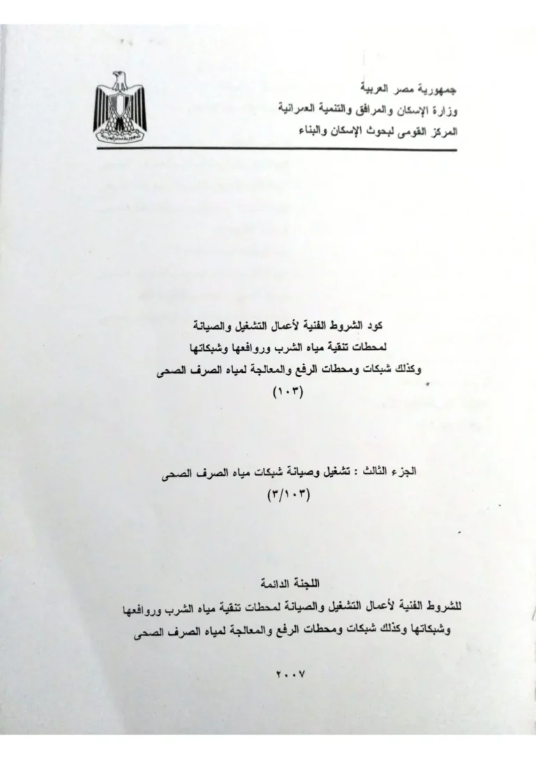 الكود المصري (الجزء الثاني: تشغيل وصيانة محطات معالجة مياه الصرف الصحي)الإصدار رقم (1) 5 2 View details Download