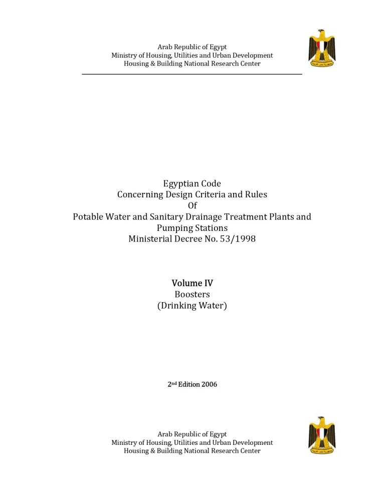 Egyptian Code Volume II Treatment Works (Wastewater) Ministerial Decree No. 1691997 7 4 View details Download