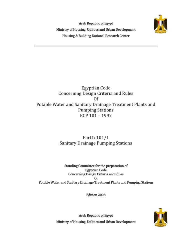 Egyptian Code Part1 (1011) Sanitary Drainage Pumping Stations ECP 101 – 1997 7 4 View details Download