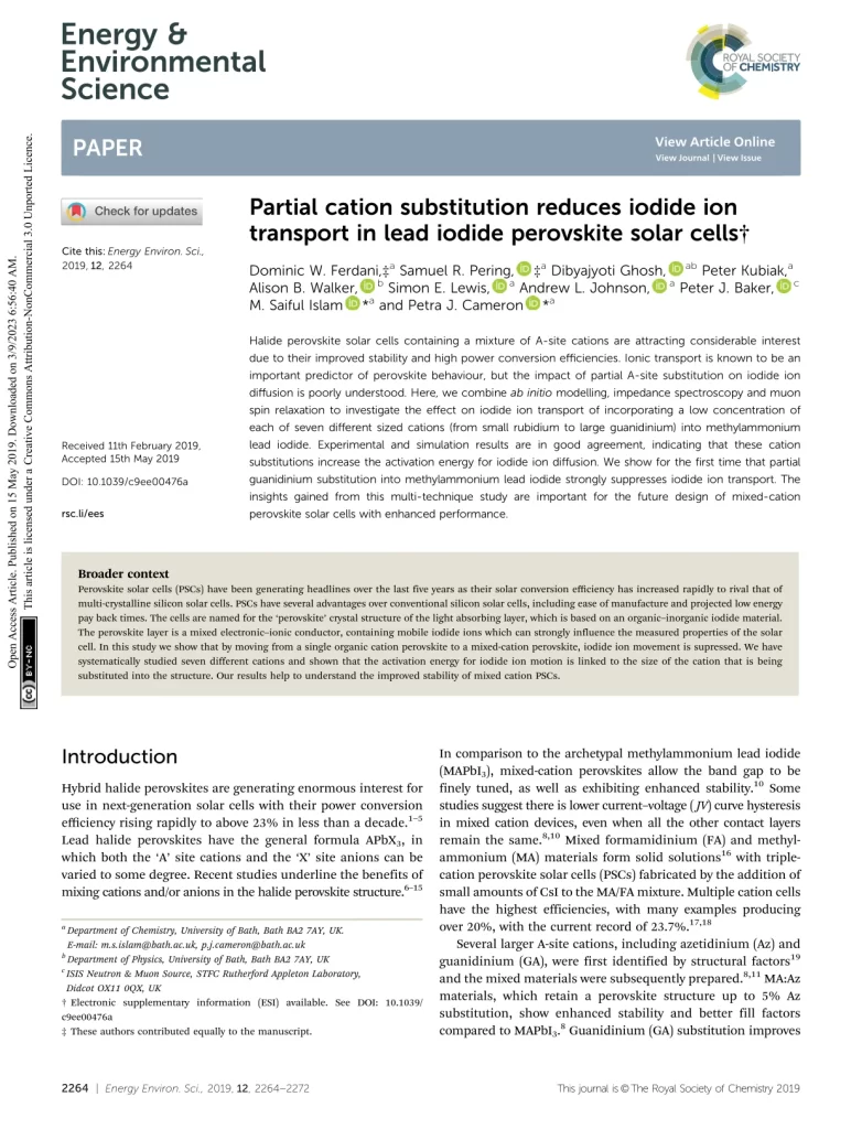 Partial Cation Substitution Reduces Ion Transport In Lead Iodide Perovskite Solar Cells