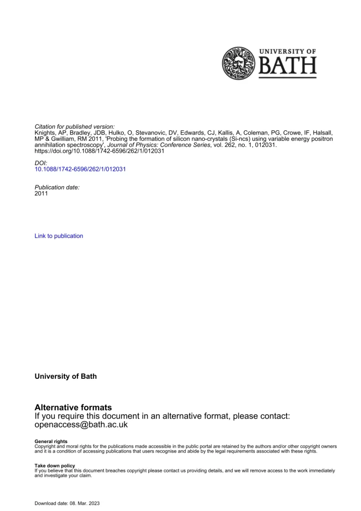 Probing The Formation Of Silicon Nano-Crystals (Si-ncs) Using Variable Energy Positron Annihilation Spectroscopy