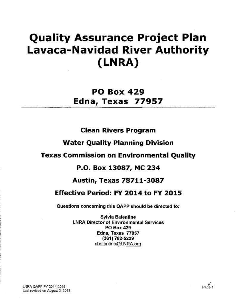Quality Assurance Project Plan Lavaca-Navidad River Authority
