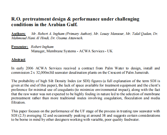 R.O. pretreatment design & performance under challenging conditions in the Arabian Gulf