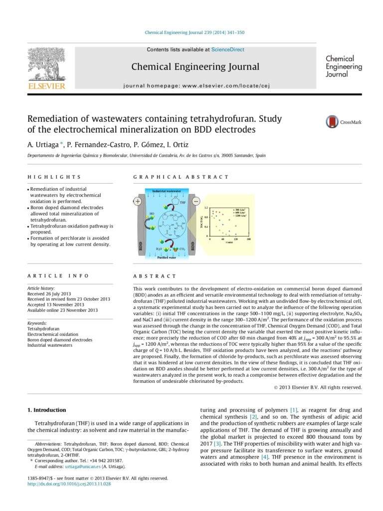 Remediation Oof Wastewaters Containing Tetrahydrofuran. Study Of The Electrochemical Mineralization On BDD Electrodes