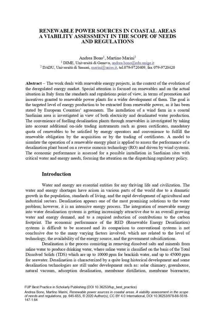 Renewable power sources in coastal areas. A viability assessment in the scope of needs and regulations