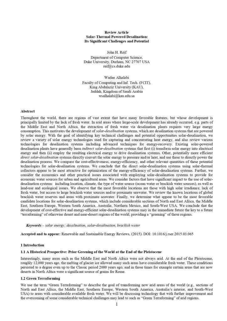 Review Article Solar-Thermal Powered Desalination Its Significant Challenges And Potential