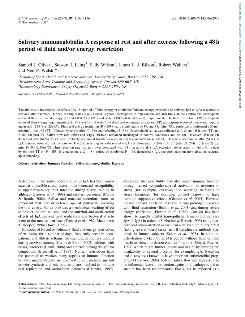 Salivary Immunoglobulin A Response At Rest And After Exercise Following A 48 H Period Of Fluid And Or Energy Restriction