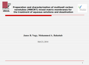 Preparation And Characterization Of Multiwall Carbon Nanotubes (MWCNT) Mixed Matrix Membranes For The Treatment Of Aqueous Solutions And Desalination 2 0