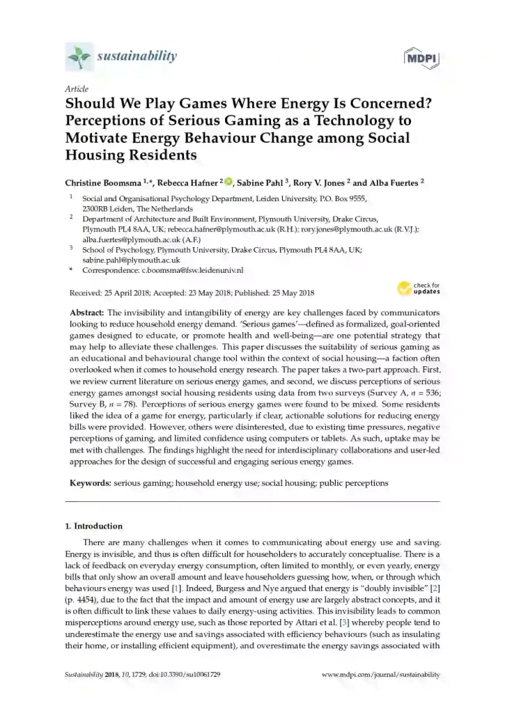 Should We Play Games Where Energy Is Concerned? Perceptions of Serious Gaming as a Technology to Motivate Energy Behaviour Change among Social Housing Residents