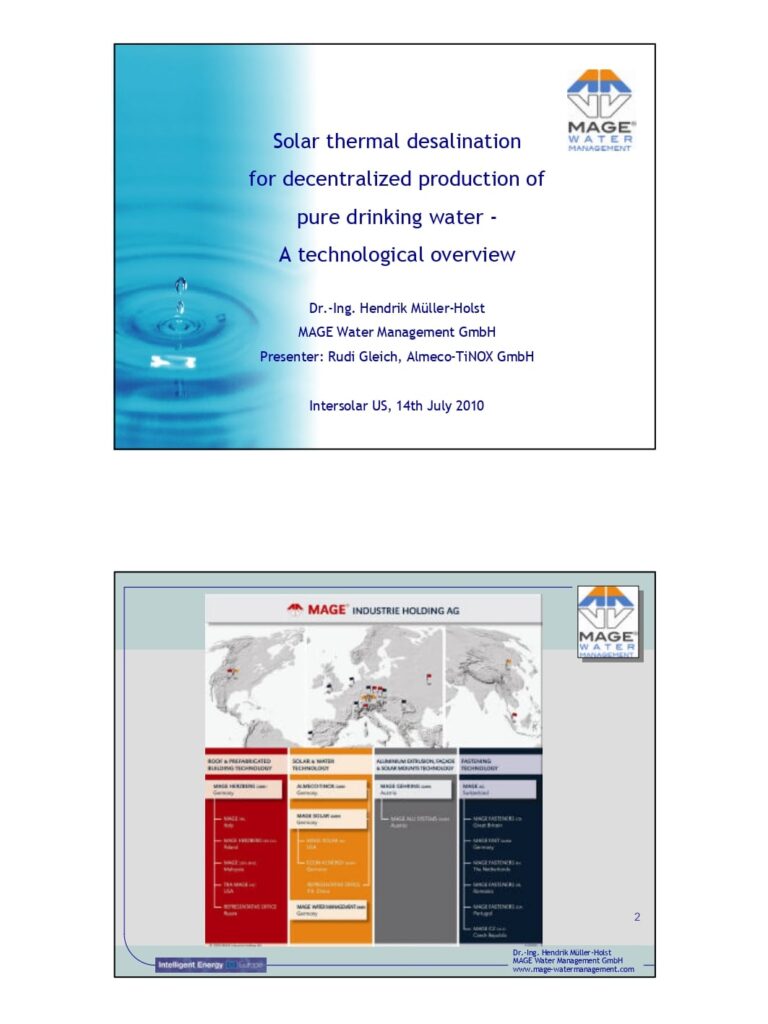 Solar Thermal Desalination For Decentralized Production Of Pure Drinking Water