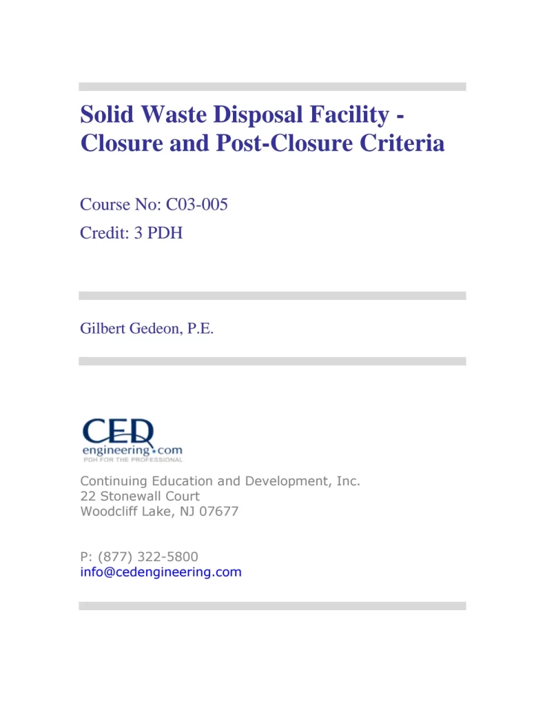 Solid Waste Disposal Facility – Closure and Post Closure Criteria