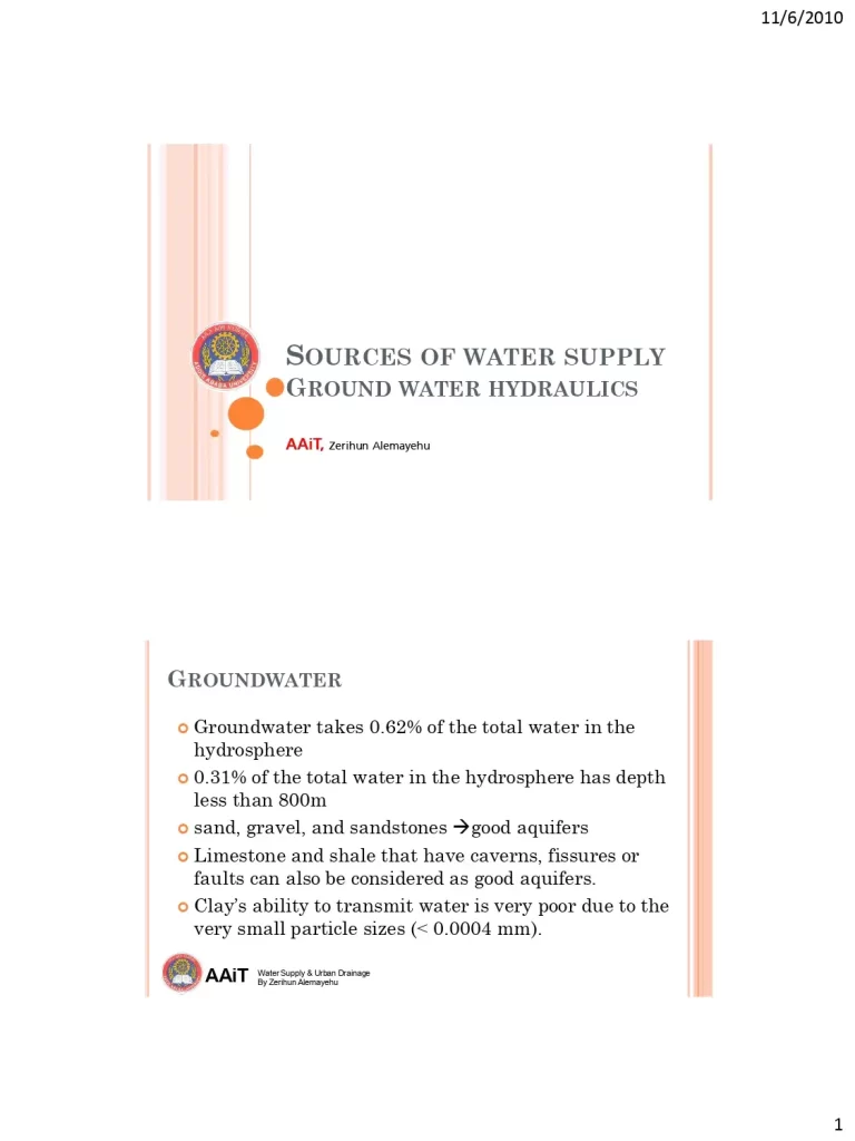 Sources Of Water Supply Ground Water Hydraulic