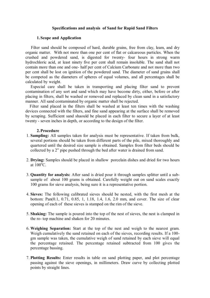 Specifications And Analysis Of Sand For Rapid Sand Filters
