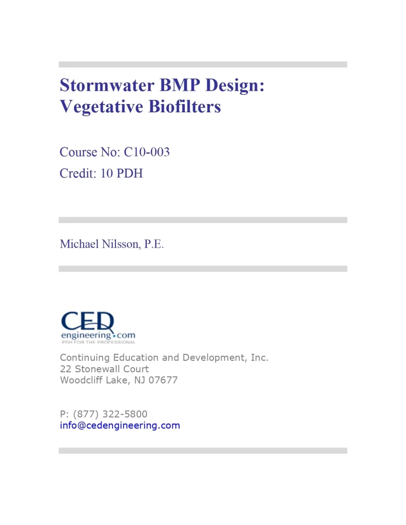 Stormwater Best Management Practice Design Vegetative Biofilters