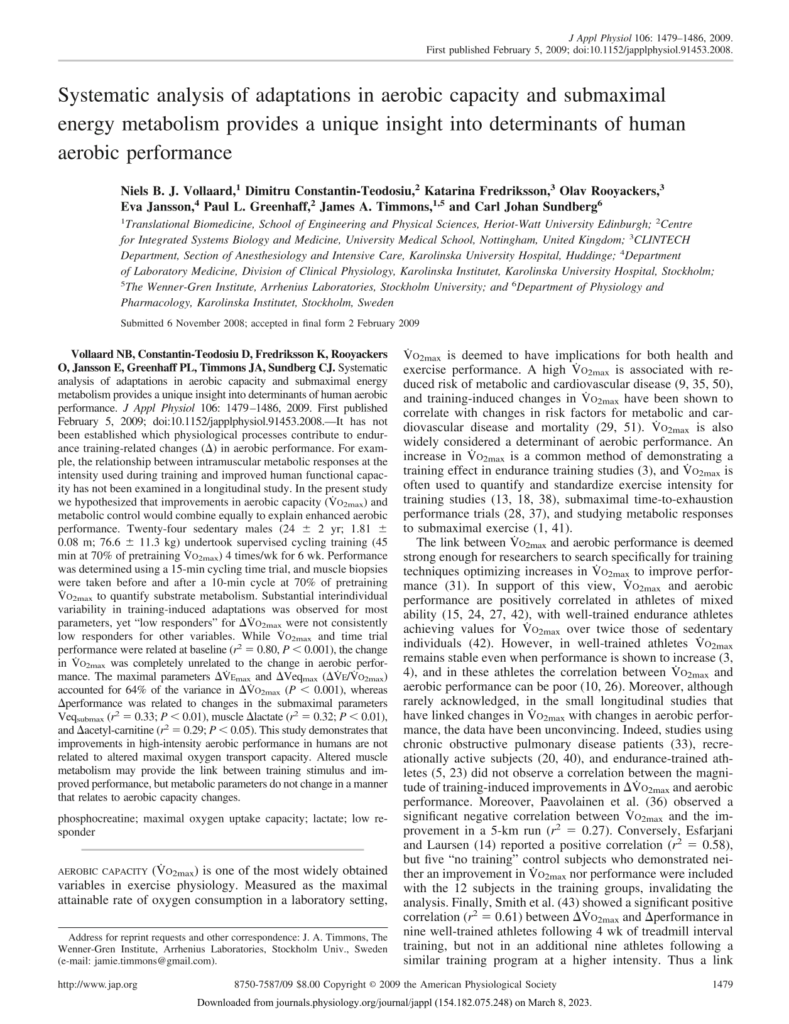 Systematic Analysis Of Adaptations In Aerobic Capacity And Submaximal Energy Metabolism Provides A Unique Insight Into Determinants Of Human Aerobic Performance