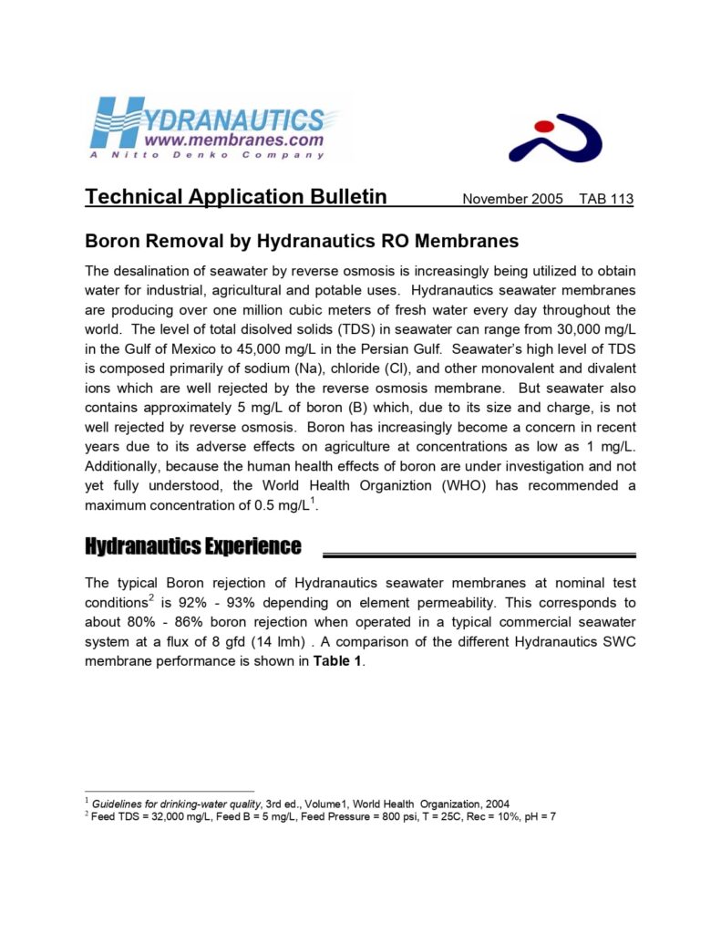 Technical Application Bulletin Boron Removal by Hydranautics RO Membranes