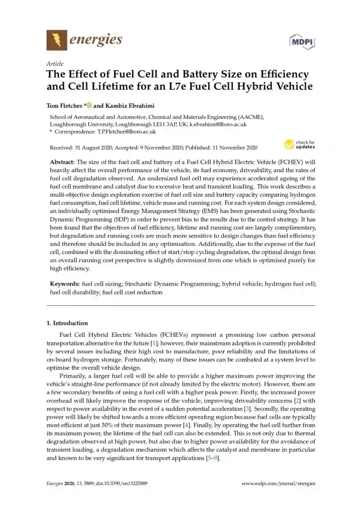 The Effect of Fuel Cell and Battery Size on Efficiency and Cell Lifetime for an L7e Fuel Cell Hybrid Vehicle