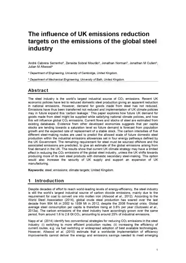 The Influence of UK Emissions Reduction Targets on the Emissions of the Global Steel Industry