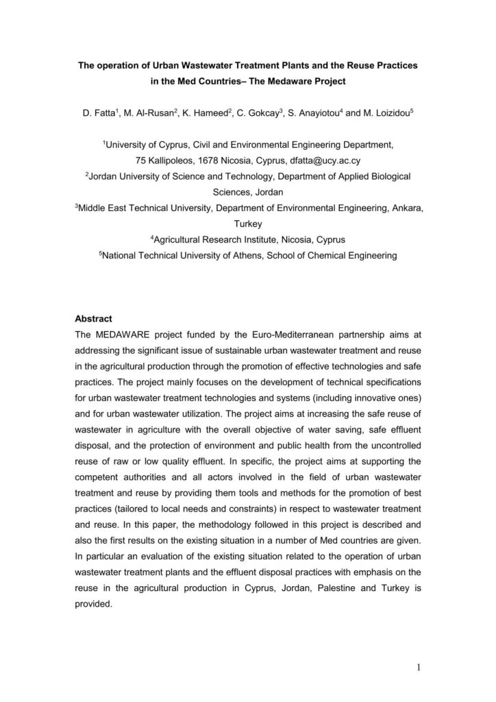 The Operation Of Urban Wastewater Treatment Plants And The Reuse Practices In The Med Countries