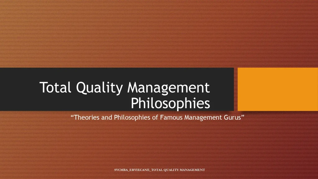 Total Quality Management Philosophies