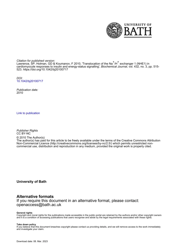 Translocation Of The Na+H+ Exchanger 1 (NHE1) In Cardiomyocyte Responses To Insulin And Energy-Status Signalling