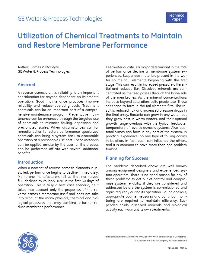 Utilization Of Chemical Treatments To Maintain And Restore Membrane Performance