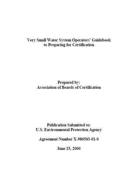 Very Small Water System Operators’ Guidebook to Preparing for Certification