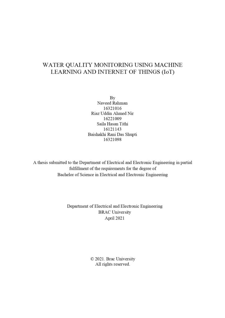Water Quality Monitoring Using Machine Learning and Internet of Things (Iot)