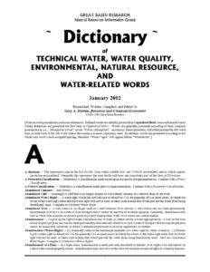 Dictionary ˜ of Technical Water, Water Quality, Environmental, Natural Resource , And Water-Related Words 0 0
