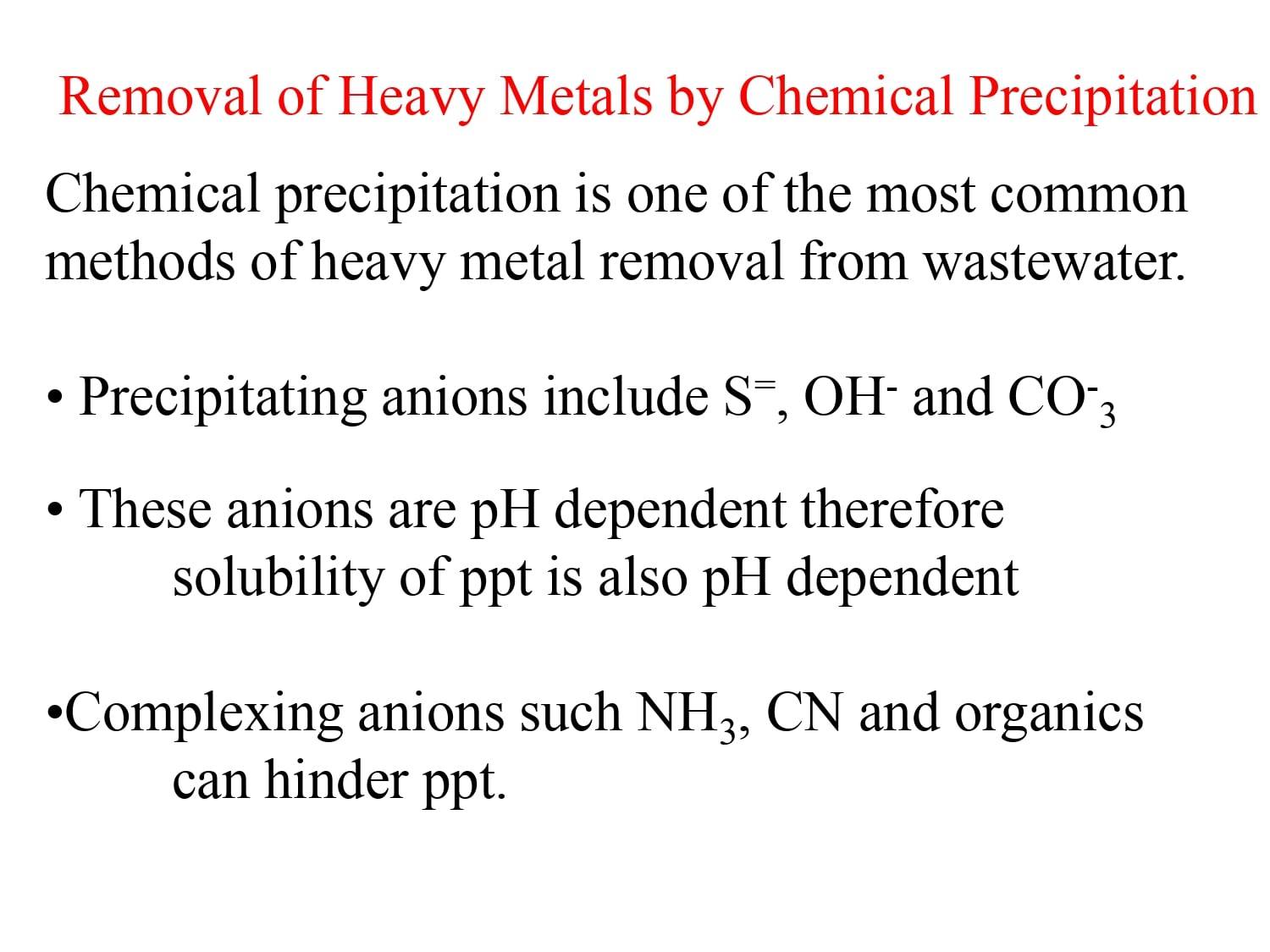 Removal of Heavy Metals by Chemical Precipitation