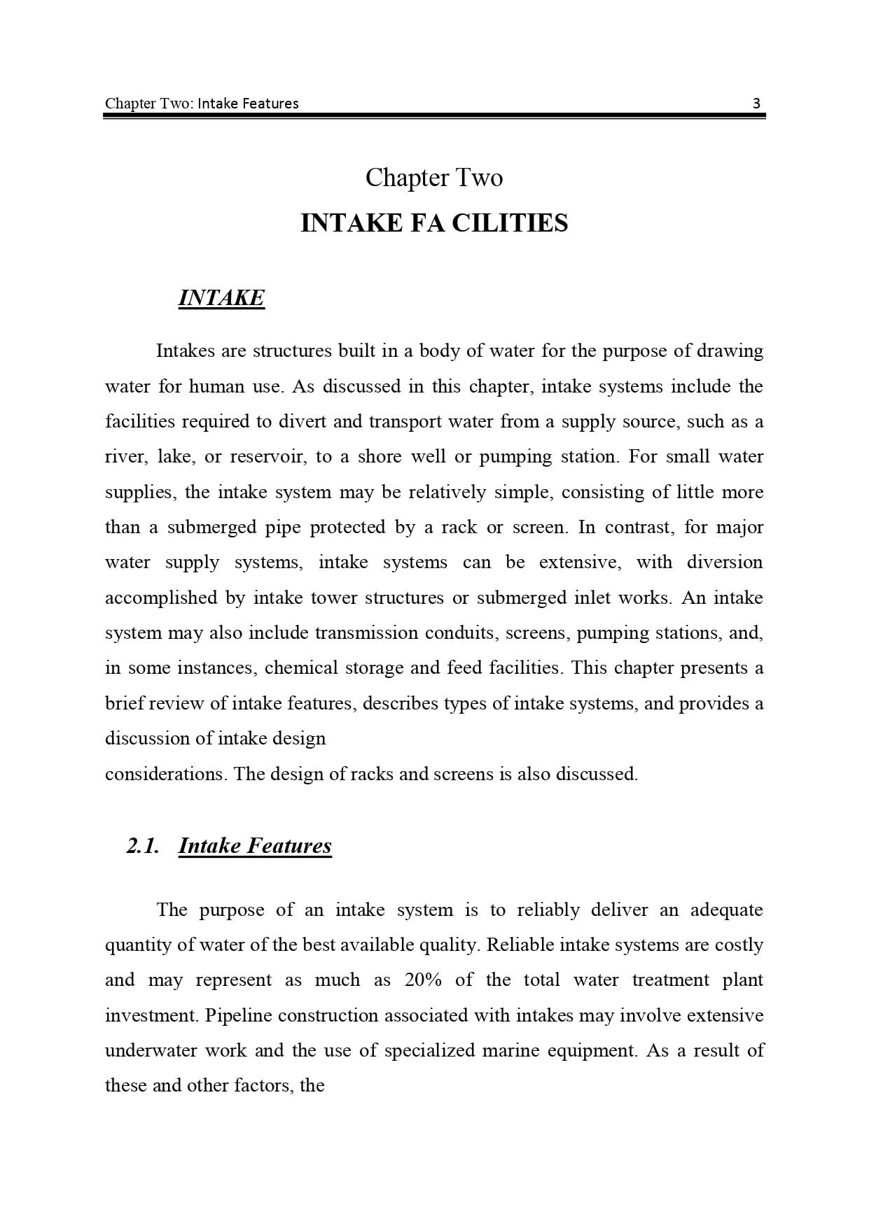 Chapter Two Intake Facilities
