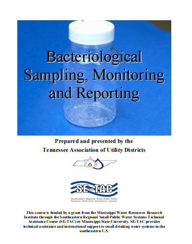 The course is designed to familiarize the student with the knowledge, necessary skills, and requirements to develop and operate a state certified laboratory for the conduct of routine bacteriological (BACT) tests. The course covers a summary presentation of state regulatory rules governing BACT sampling, monitoring, and reporting. Certain microbiological characteristics of drinking water are also presented in conjunction with a presentation on common waterborne diseases, focusing on the latest pathogenic concerns with Cryptosporidium parvum and Giardia lamblia. Proper BACT sampling procedures are developed in a student participation exercise followed by actual water sampling for BACT using one of the EPA approved presence-absence methods. Test results are read on the second day to provide the required 24 hr