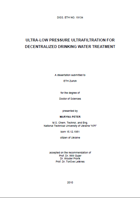 Ultra-Low Pressure Ultrafiltration For Decentralized Drinking Water Treatment