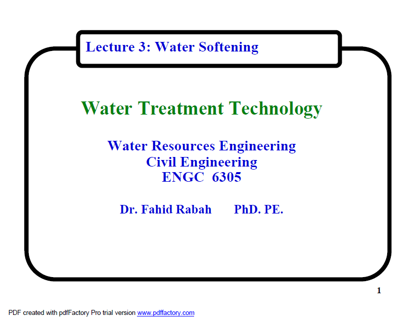 This manual, intended for planners and design engineers, presents information on water quality standards and design criteria for water treatment processes. This manual also establishes criteria to be followed in determining the necessity for and the extent of treatment, and on procedures applicable to the planning of water treatment projects. This manual is applicable to all elements of the Army and Air Force responsible for the planning and design of military construction,Water treatment proiects. State health department, State water resource, and U.S. Environmental Protection Agency personnel, as