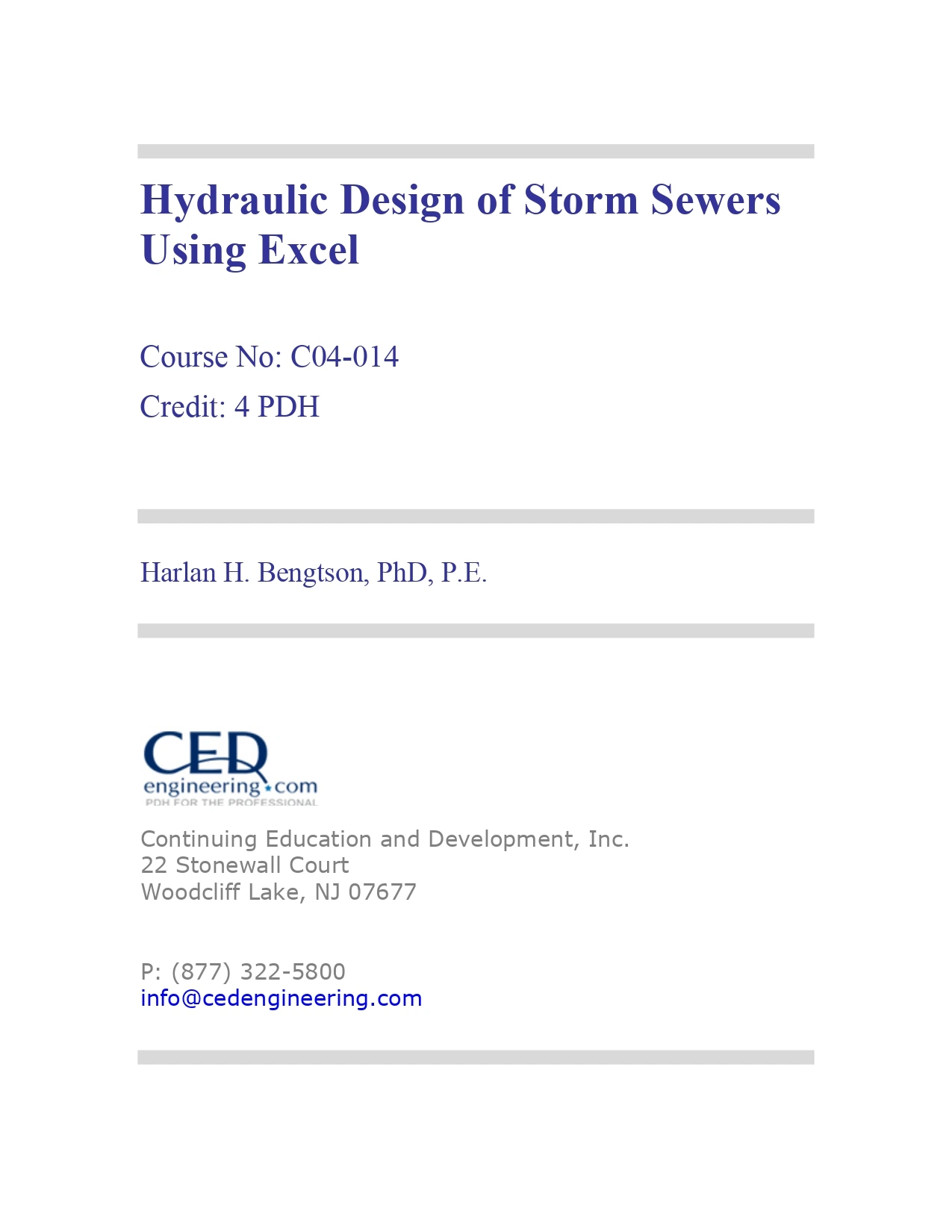 Storm sewers are widely used to carry away runoff from storms, primarily in urban areas. The hydraulic design begins after the location of the manholes for the system has been determined. Between each pair of manholes, the storm sewer will have a constant slope and diameter. The hydraulic design process results in the determination of an appropriate diameter and slope for each length of storm sewer and determines the depth of the bottom of the pipe at each manhole. The overall procedure and each step will be presented and discussed. Example calculations for a single length of storm sewer between two manholes will be performed and an example of calculations between successive manholes will be done using Excel.