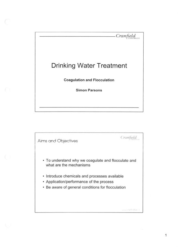 This is an introduction to water treatment systems and technology. It is not a design manual or an exhaustive treatise. It is intended for engineers who are not regularly involved in water treatment projects, but who are interested in learning some of the basics involved. Criteria to be followed in determining the necessity for and the extent of treatment are discussed here, as are procedures applicable to the planning of water treatment projects.