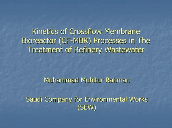 Kinetics Of Crossflow Membrane Bioreactor (CF-MBR) Processes In The Treatment Of Refinery Wastewater